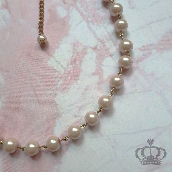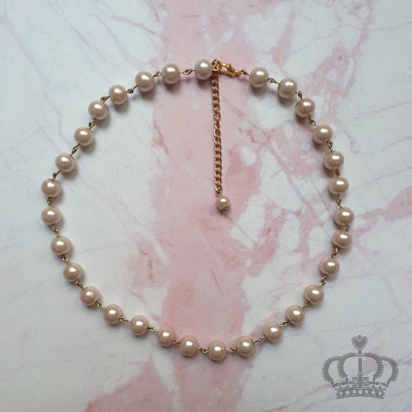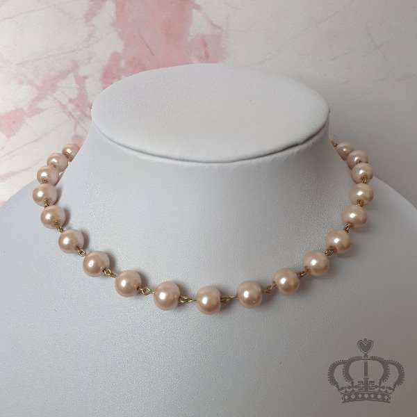 Collar perlas simple (8mm) beige rosado, alambre dorado