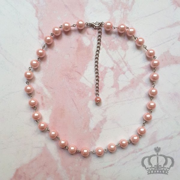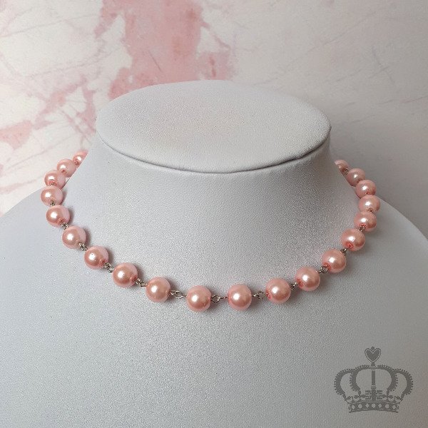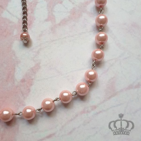 Collar perlas simple (8mm) rosa pastel, alambre plateado