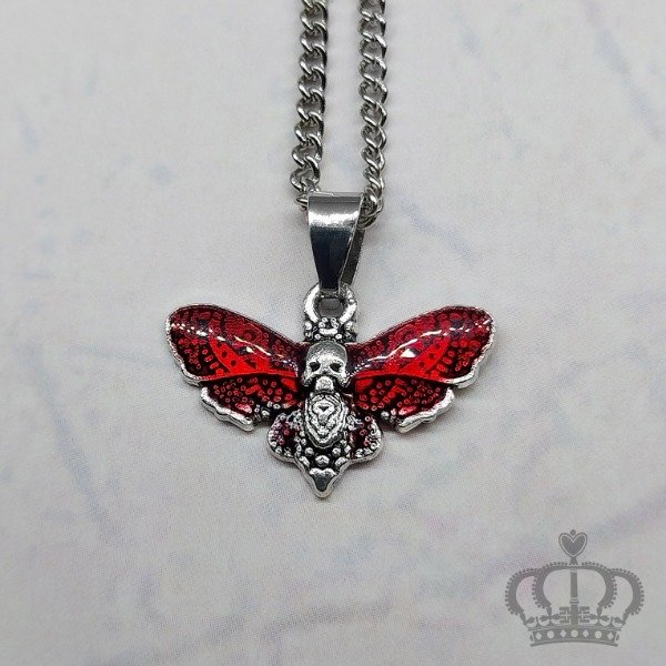 Collar Polilla skull mini (plata-rojo)